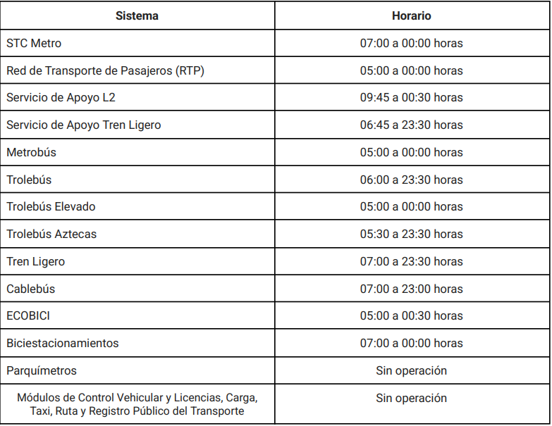 Cabe recordar que, durante el día, la Red MI permitirá el ingreso con bicicleta al Metro, Cablebús, Metrobús y Tren Ligero. En Trolebús y RTP el acceso con bicicletas estará sujeto a disponibilidad de espacios dentro de las unidades. Adicionalmente, los Centros de Atención a Personas Usuarias (CAPU) de ECOBICI permanecerán cerrados.